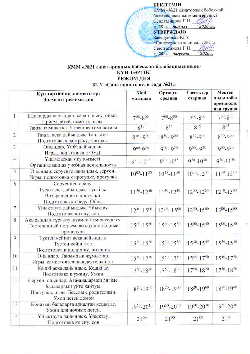 Күн тәртібі » ГУ "Санаторный ясли сад №21"
