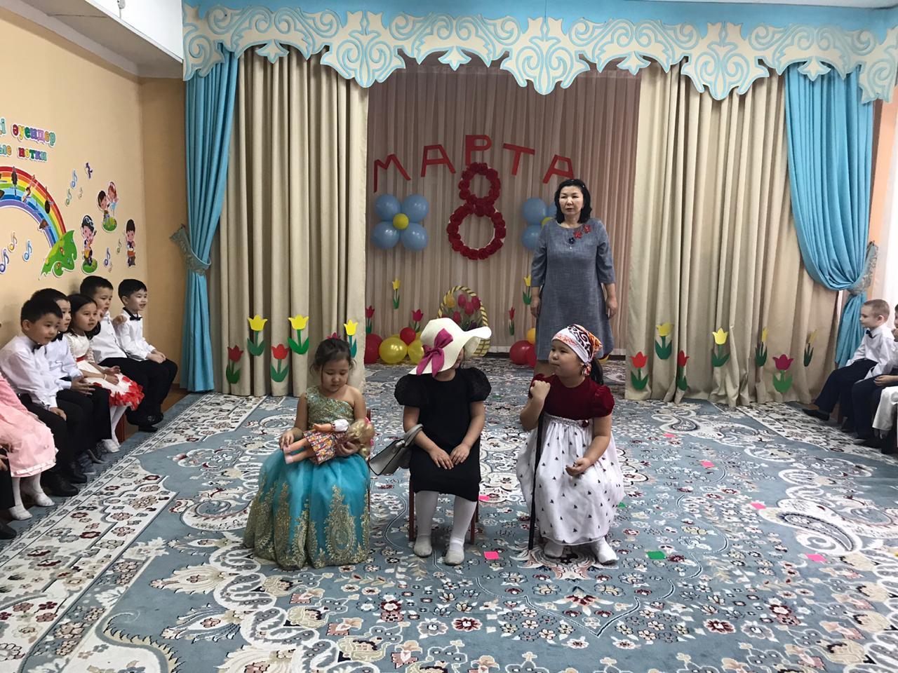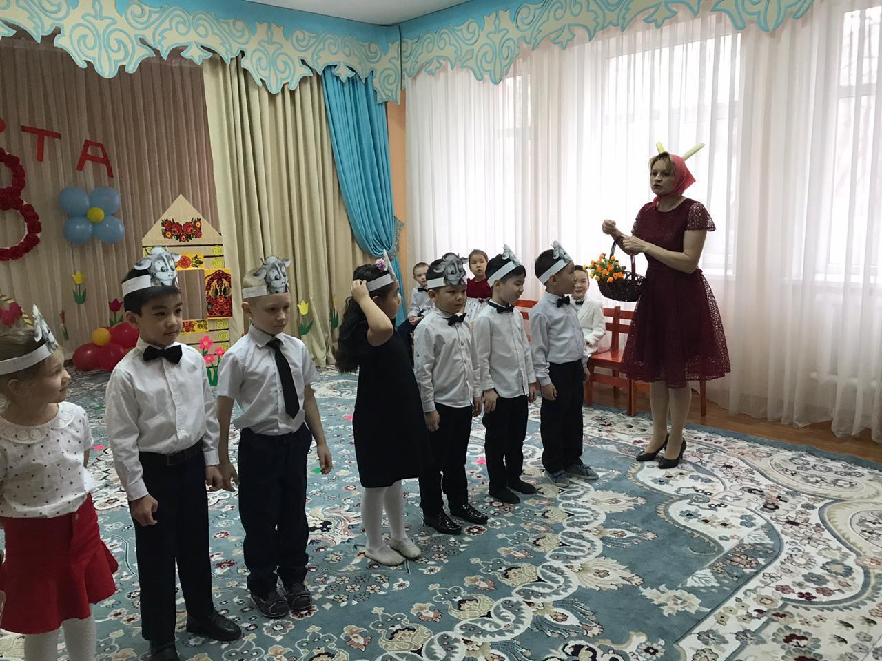 ГУ "Санаторный ясли сад №21" » Ертеңгіліктер » 8 наурыз Халықаралық әйелдер күніне арналған көктем мерекесі. Тақырыбы «Қасқыр мен жеті лақ». "Құлыншақ" мектепалды даярлық тобы.